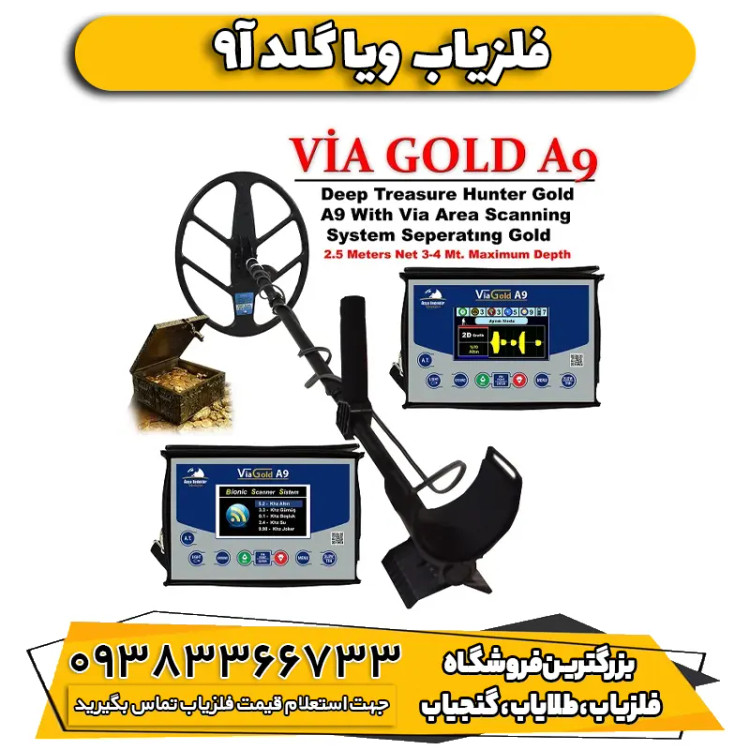 دستگاه گنج یاب Via Gold a9 با قابلیت اسکن میدانی و تشخیص طلا،